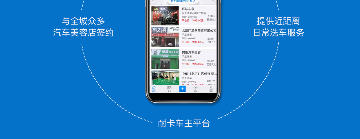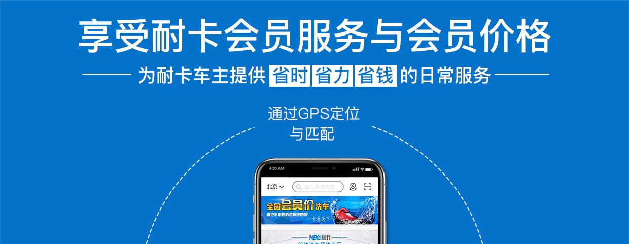 平台签约洗车服务 PLATFORM CONTRACT CAR SERVICE 耐卡车主平台与全城众多洗车美容店签约 ,通过GPS定位与匹配 ,为车主提供距离最近的日常洗车服务 。任何签约店平台客户无需办卡即可享受会员服务与会员价格 。为耐卡车主提供省时省力省钱的日常服务。